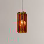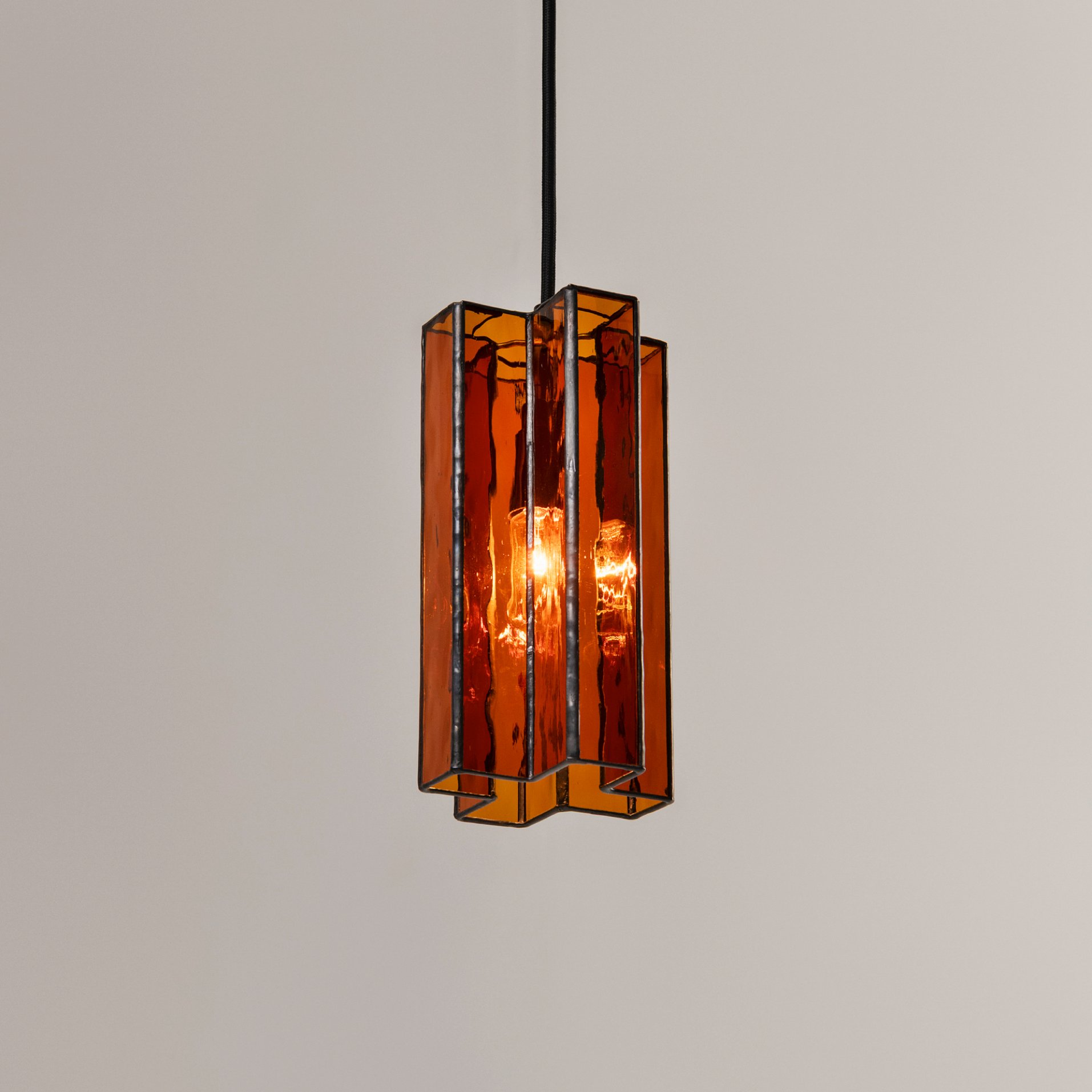 This pendant is perfect for overhead installation with the amber glass giving off a beautifully warm diffused light with a soft glow emanating from the bottom to give light to a table or benchtop below.